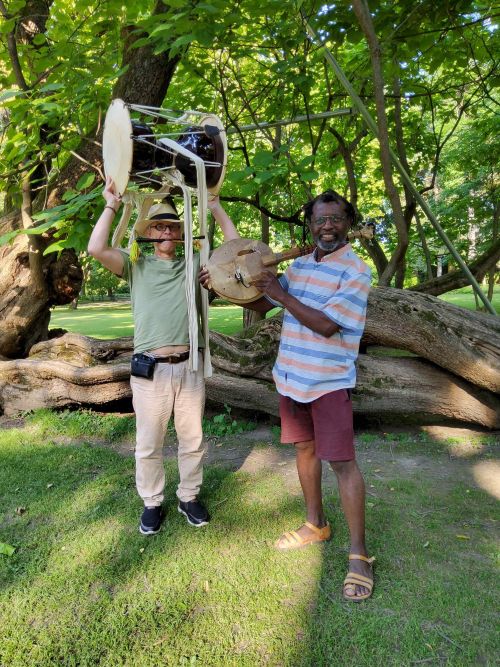 Luka Mukhavele mit Bernhard Noriller & Thomas Salomon Ochoa GraciaLuka Mukhavele, Musiker, Musikethnologe und Instrumentenbauer aus Mosambik, derzeit wohnhaft in Innsbruck. Sein Schwerpunkt liegt auf afrikanischen Musikinstrumenten, wie seine Doktorarbeit „African Musical Instruments from a Contemporary Global Perspective: Mbira and Xizambi“ zeigt. Luka hat im Laufe seiner Karriere konventionelle westliche Instrumente wie Gitarre, Saxofon und Querflöte erlernt, komponiert und gespielt. Seit mehr als zwanzig Jahren komponiert und spielt er jedoch ausschließlich auf seinen selbstgebauten Instrumenten, darunter Mbira, Xizambi, Mbvoko, Mbvokwani, Xitende und Marimba. Damit wird eine philosophisch und wissenschaftlich fundierte ideologische Aussage getroffen, die der Trivialisierung der afrikanischen Kultur durch die Auferlegung westlicher Werte und kultureller Produkte entgegenwirkt. Für Luka ist der Kolonialismus nicht vorbei, solange afrikanische Bildung weiterhin ausschließlich in westlichen Sprachen stattfindet, Musik mit westlichen Instrumenten unterrichtet wird und künstlerischer Erfolg an westlichen Paradigmen gemessen wird. In diesem Zusammenhang sympathisiert Luka mit dem Konzept des Festivals „Echos der Vielfalt“, das darauf abzielt, kulturelle Vielfalt auf Augenhöhe zu zeigen. Bernhard Noriller, Musiker, besonders Percussionist, Komponist, Trainer in Erwachsenenbildung aus Innsbruck, wirkt seit 1975 in zahlreichen Bands (Tintenfisch, Supershuts, White Roots, The Moderate Sax & The Jazztetts, Mais Uma, The BCs usw.) als Gitarrist, Percussionist und Komponist; Percussionist, Komponist und Geschäftsführer des Weltmusikensembles „Comin & Goin“ (4 CDs, 5 DVDs); Tonträger (MC, LP) und Videoclips mit der Blues-Rock-Gruppe Tintenfisch; TaKeTiNa®-Instrumentalausbildung bei Reinhard und Cornelia Flatischler und Heidrun Hoffmann für Tschanggo und Berimbau; seit 2003 Fortbildungen in traditioneller koreanischer Perkussion bei Kim Dong-Won (Samulnori, Südkorea). Verstärkt werden die beiden durch den gebürtigen Kolumbianer Thomas Salomon Ochoa Gracia (Gitarre, Flöte, Stimme). Websites & Kontakte: Luka Mukhavele: www.mukhambira-musical.online Bernhard Noriller: https://www.cominandgoin.com/hpcg/kontakt.htm |